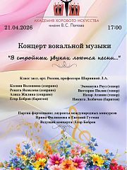 Концерт учащихся ПЦК вокала Хорового училища имени А.В. СвешниковаНачало в 16:00