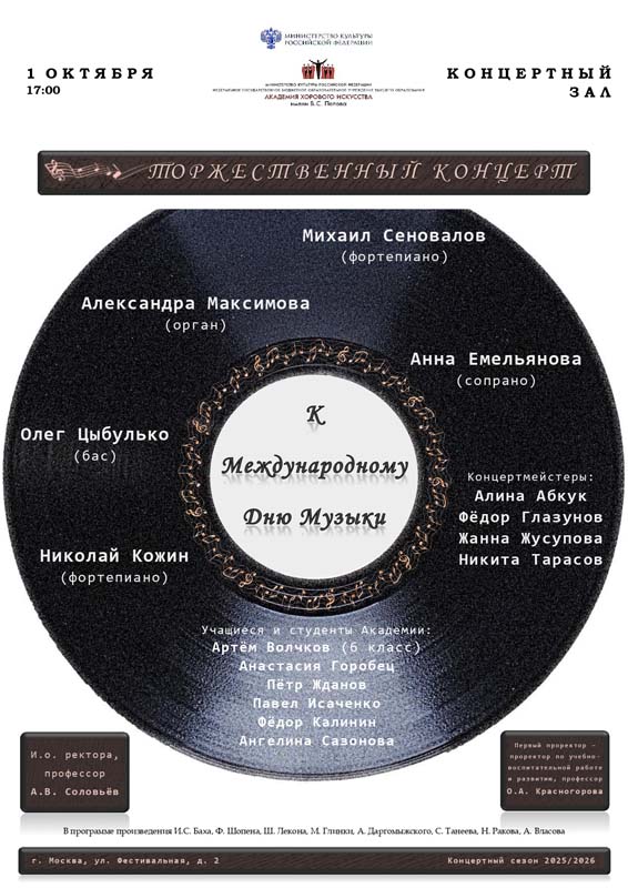 Приглашаем 1 октября в Концертный зал Академии на праздничную программу ко Дню Музыки. Начало в 17:00.
