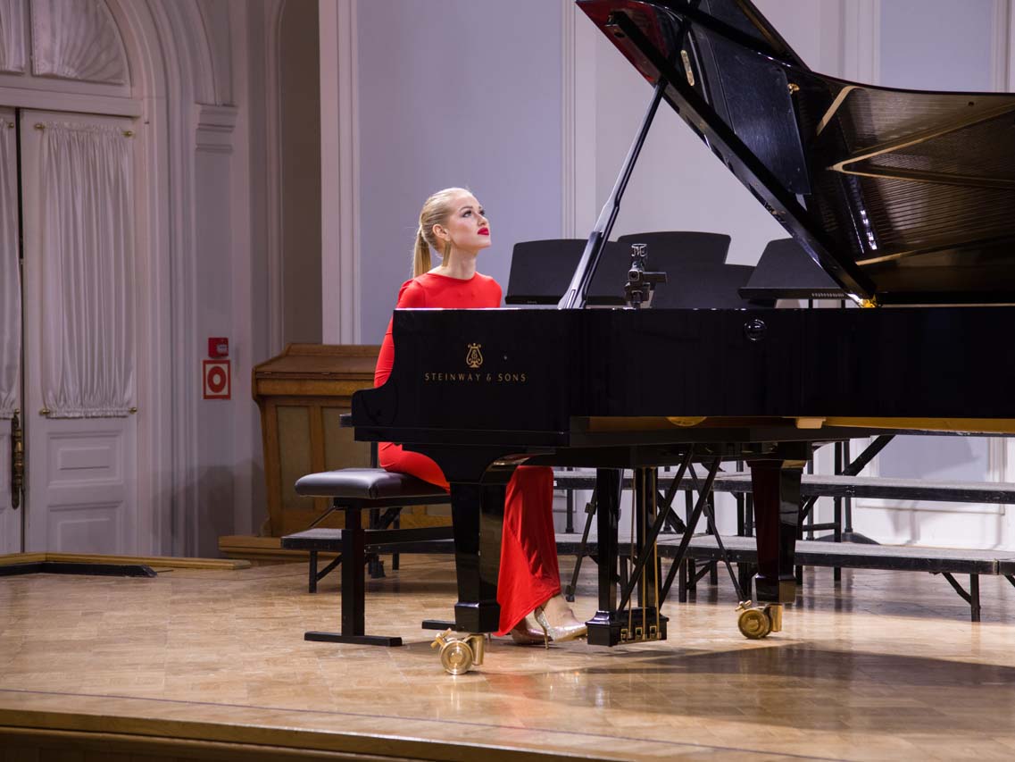 В завершении концерта прозвучала фортепианная музыка — магистрант Академии, лауреат международных конкурсов Татьяна Булыгина сыграла Полонез Ф. Шопена соч. 53 ля бемоль мажор; Фёдор Глазунов исполнил первую часть Концерта для фортепиано с оркестром ре минор С.В. Рахманинова (класс заведующей кафедрой фортепиано, профессора О.А. Красногоровой).