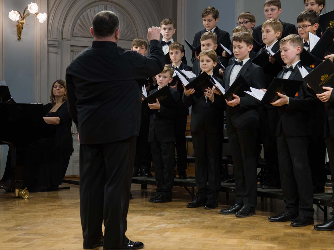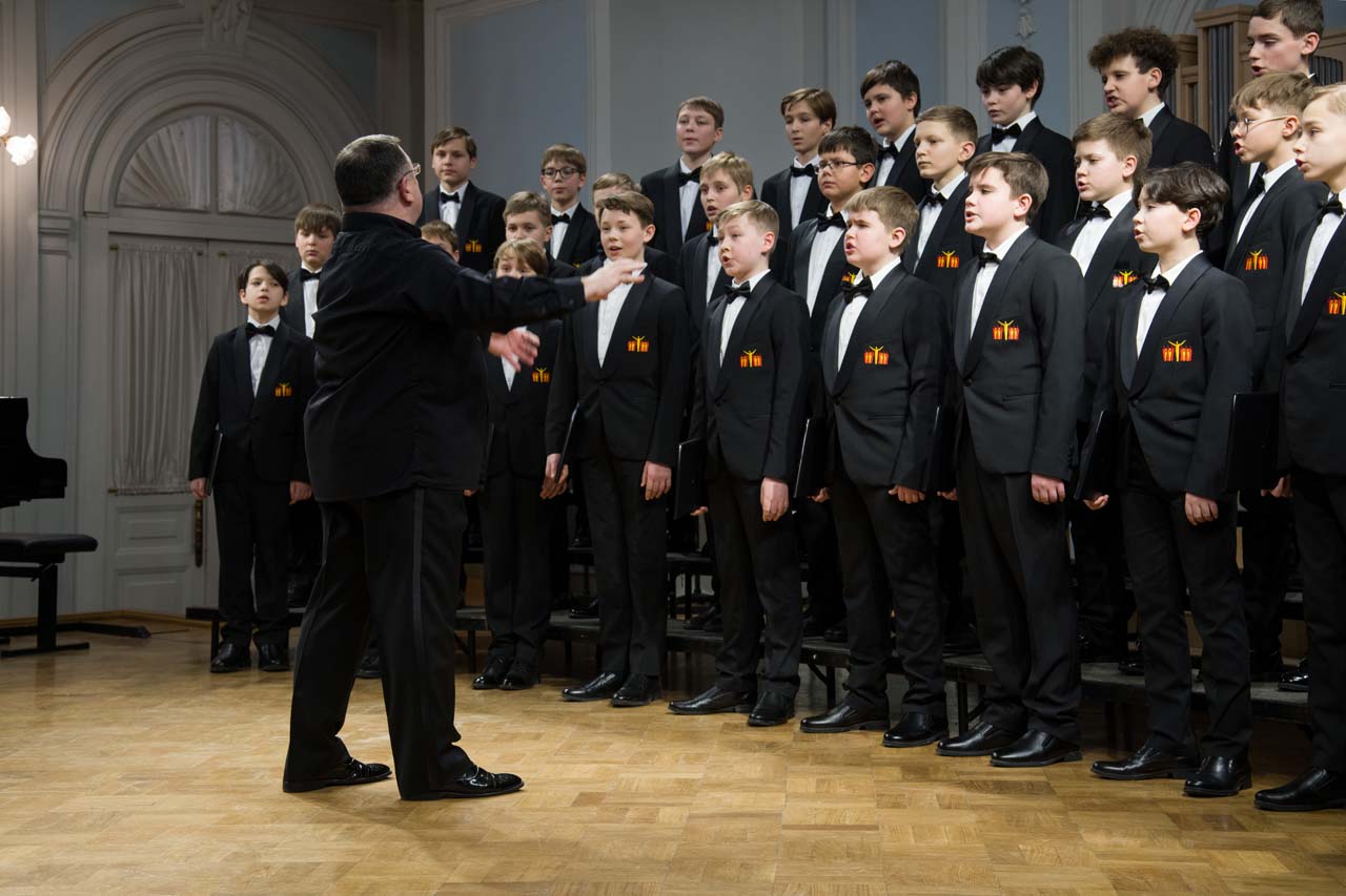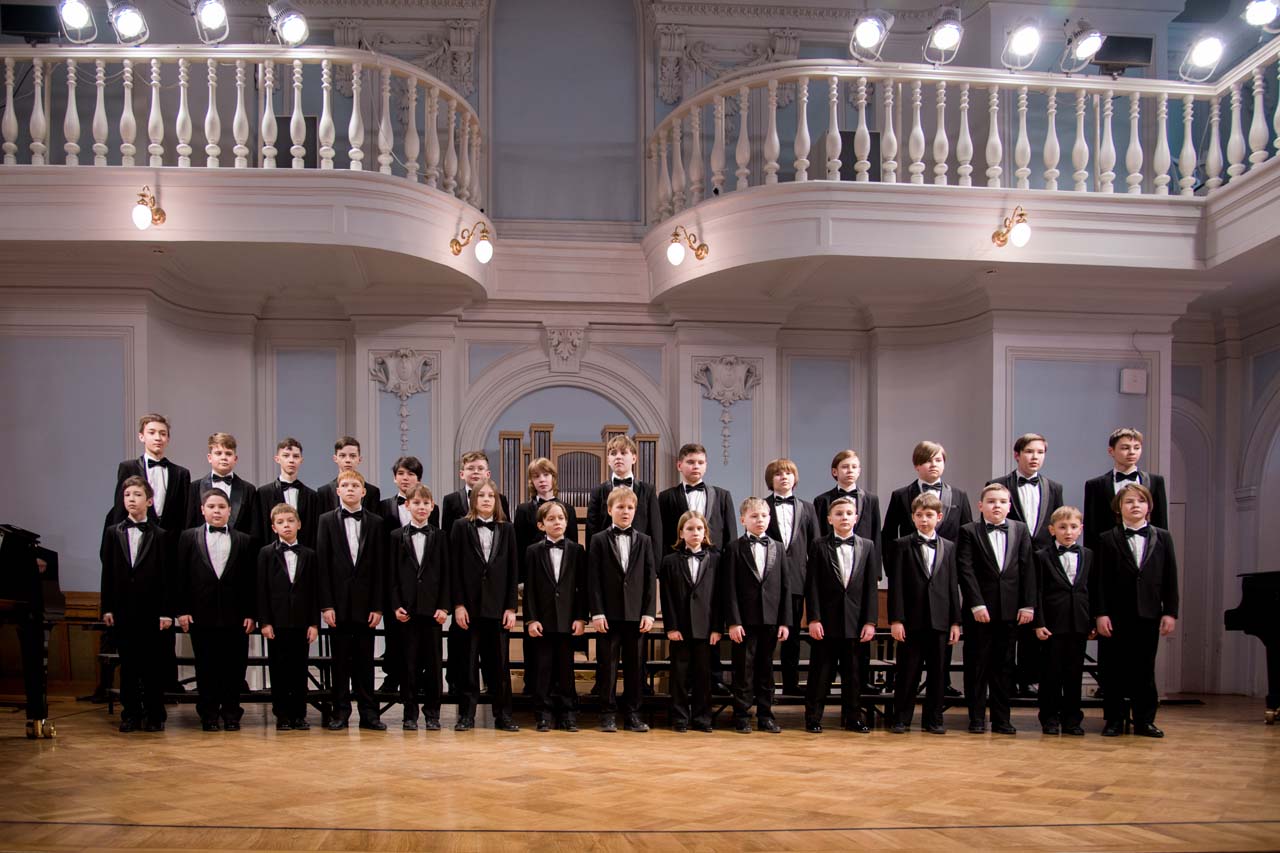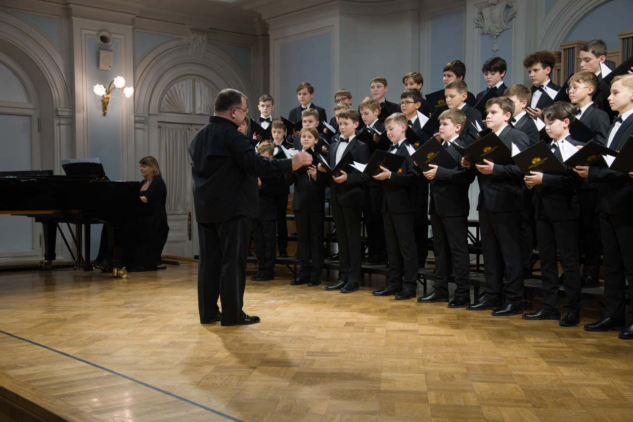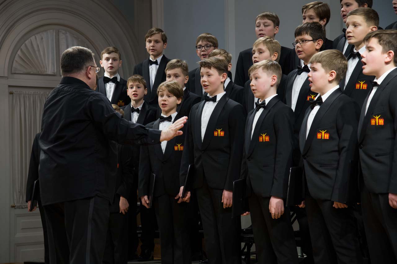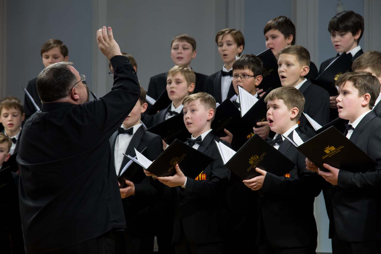 Художественный руководитель и дирижер — почётный работник культуры города Москвы, лауреат премии Министерства культуры РФ, доцент Александр Цимбалов (хормейстер — лауреат международных конкурсов Кирилл Кадыков). В исполнении легендарного коллектива прозвучали хоровые шедевры российских композиторов — «Гаснет вечер» А.В. Свешникова (солисты — Михаил Бурменский, Иван Шушунов, Платон Дегтярёв); «Утро» Р.К. Щедрина на сл. А.С. Пушкина; два хора из цикла «Ноктюрны» В. Пьянкова: “Рождественская ночь” (солист — Артём Волчков) и “Колядки”; «Утренний канон» Т. Корганова на сл. А. Бланка. В финале выступления Хор мальчиков исполнил «Ночь» П. Чеснокова на сл. А. Плещеева и «Звонче жаворонка пенье» Н.А. Римского-Корсакова на сл. А. Толстого (партия фортепиано — Ольга Красногорова).