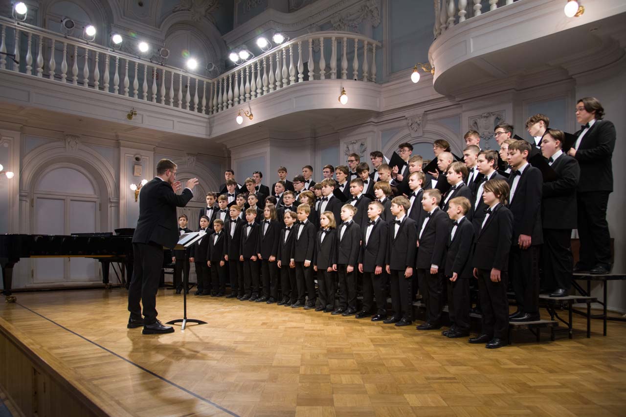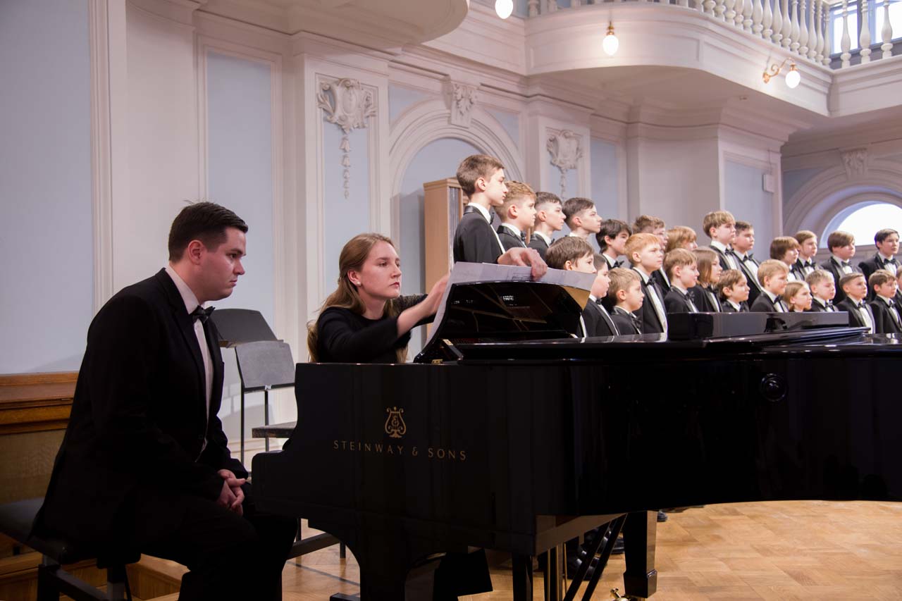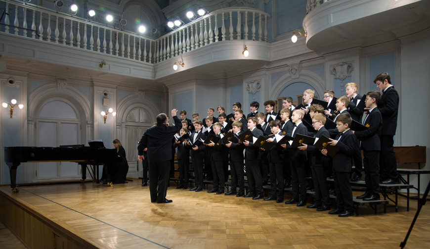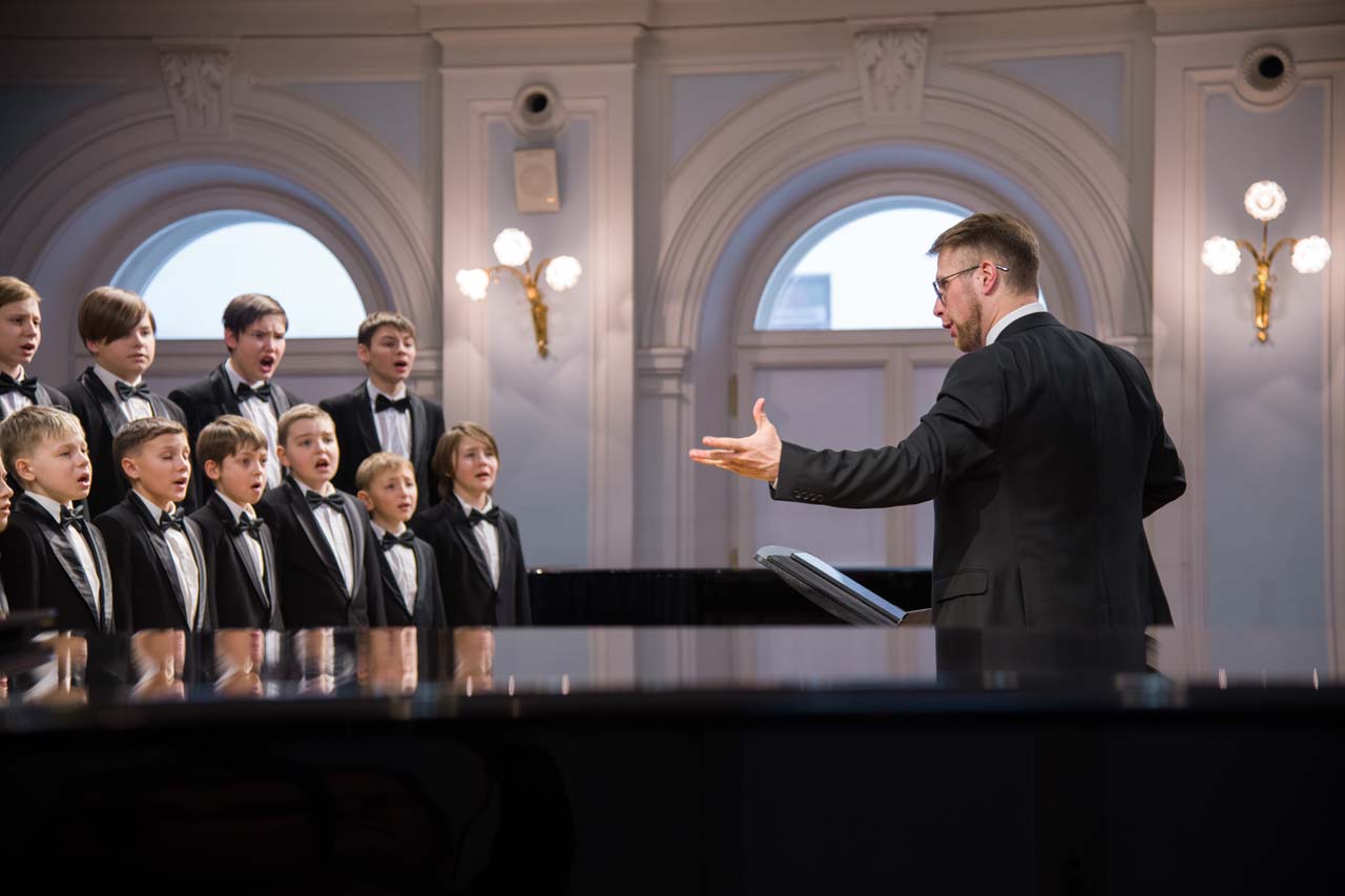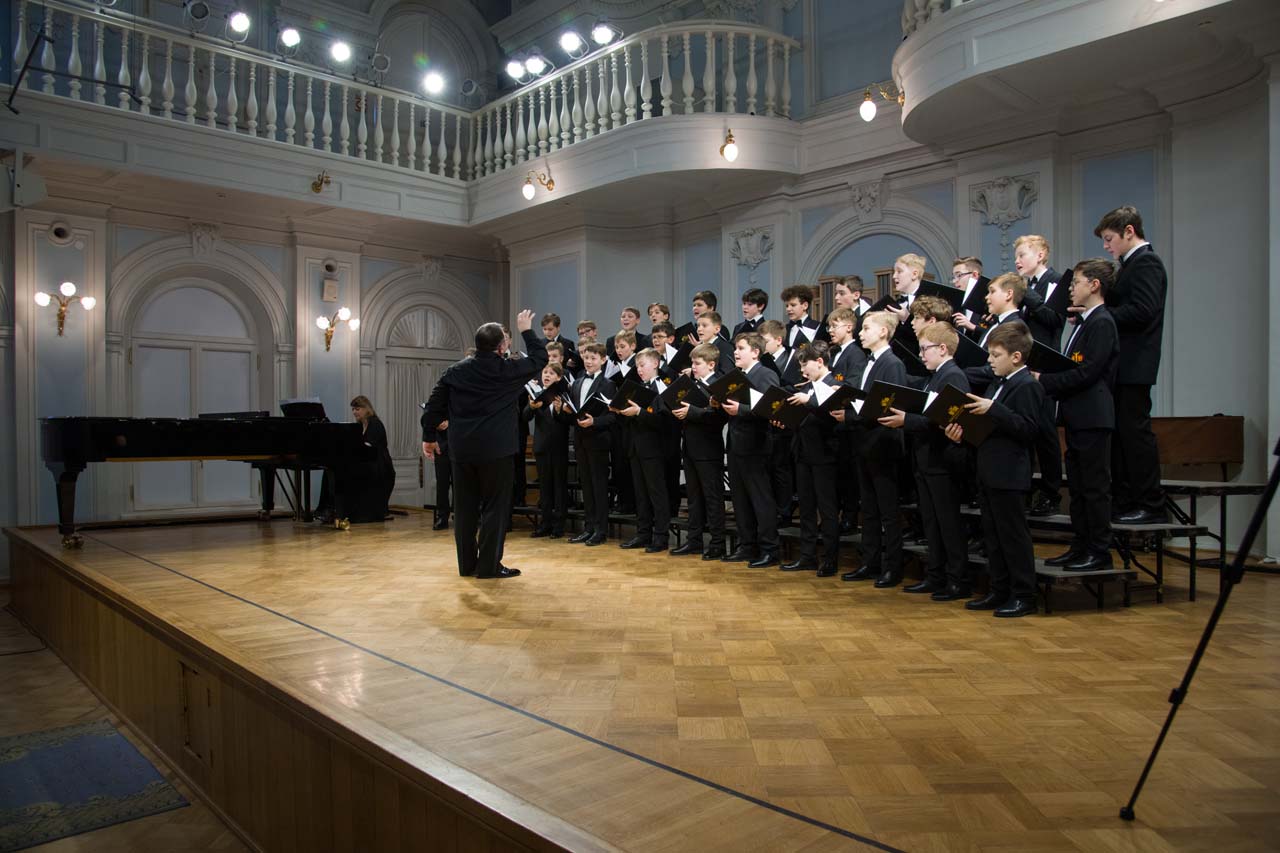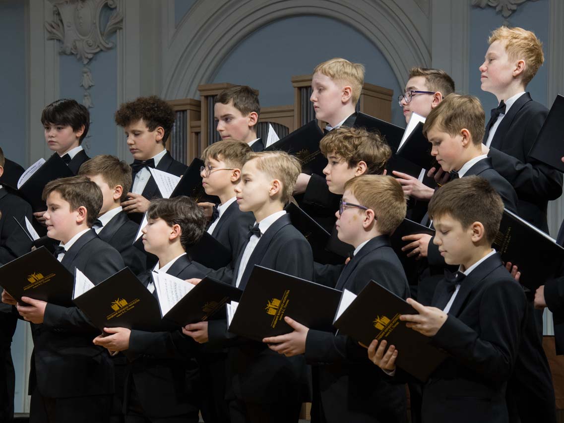 Художественный руководитель и дирижер — почётный работник культуры города Москвы, лауреат премии Министерства культуры РФ, доцент Александр Цимбалов (хормейстер — лауреат международных конкурсов Кирилл Кадыков). В исполнении легендарного коллектива прозвучали хоровые шедевры российских композиторов — «Гаснет вечер» А.В. Свешникова (солисты — Михаил Бурменский, Иван Шушунов, Платон Дегтярёв); «Утро» Р.К. Щедрина на сл. А.С. Пушкина; два хора из цикла «Ноктюрны» В. Пьянкова: “Рождественская ночь” (солист — Артём Волчков) и “Колядки”; «Утренний канон» Т. Корганова на сл. А. Бланка. В финале выступления Хор мальчиков исполнил «Ночь» П. Чеснокова на сл. А. Плещеева и «Звонче жаворонка пенье» Н.А. Римского-Корсакова на сл. А. Толстого (партия фортепиано — Ольга Красногорова).