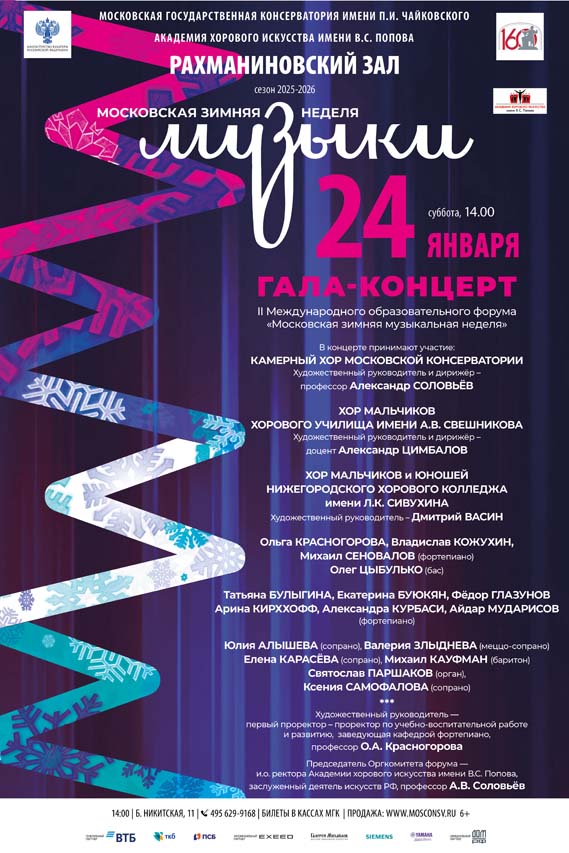 24 января Гала-концерт в Рахманиновском зале Московской консерватории завершил II Международный образовательный форум «Московская зимняя неделя музыки», приуроченный к Дню российского студенчества.