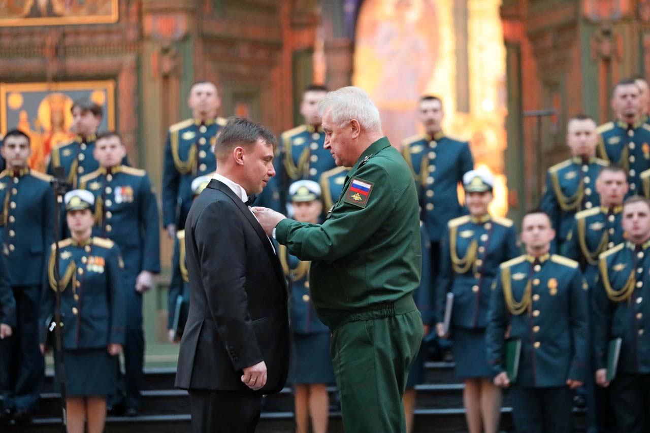 В рамках торжественного мероприятия Художественного руководителя и дирижера Хора юношей Хорового училища имени А.В. Свешникова профессора Дениса Храмова наградили медалью «За веру и служение Отечеству».