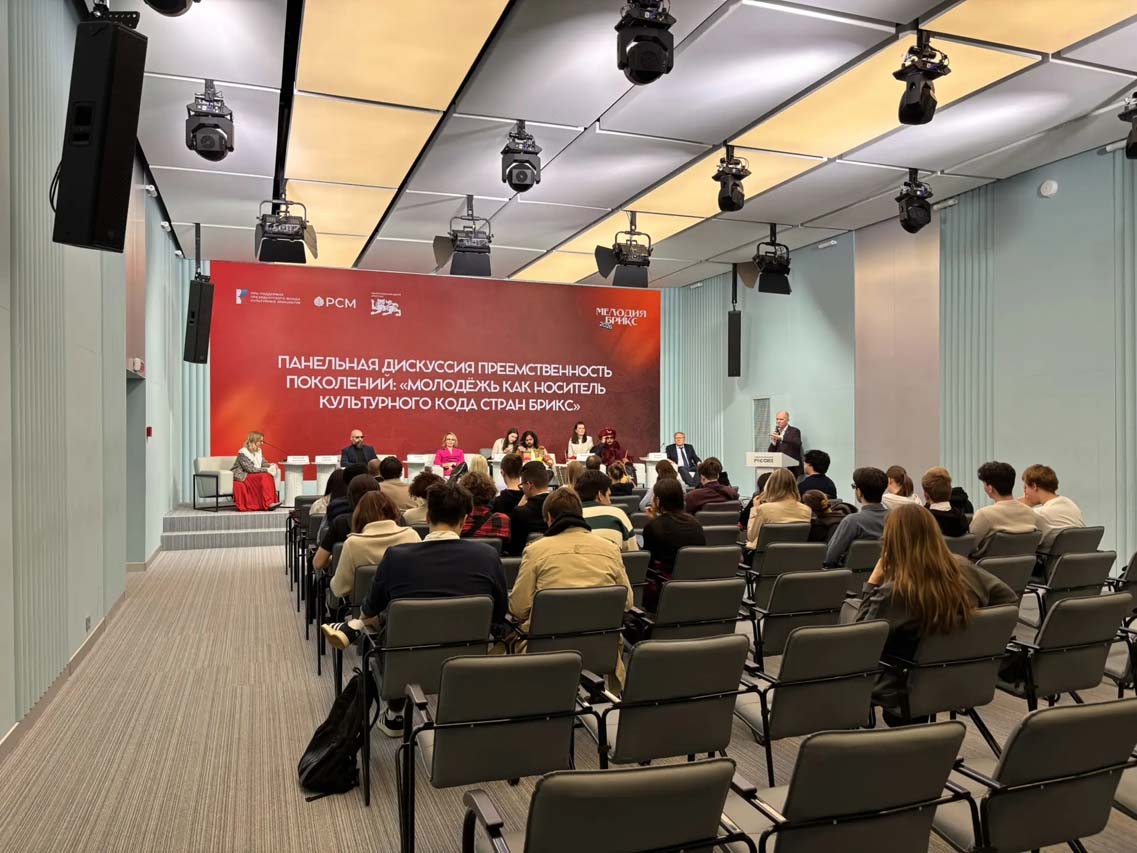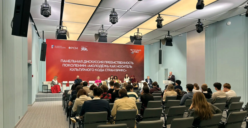 24-25 апреля 2026 года студенческая группа Академии совместно с помощником первого проректора – проректора по учебно-воспитательной работе и развитию Николаем Вячеславовичем Кожиным, курирующем вопросы молодёжной политики, посетили Национальный центр «Россия», где состоялся Международный проект «Мелодия БРИКС», являющийся пространством культурного диалога, где музыка становится универсальным языком, став слушателями панельной дискуссии «Преемственность поколений: ”Молодёжь, как носитель культурного кода стран БРИКС”».