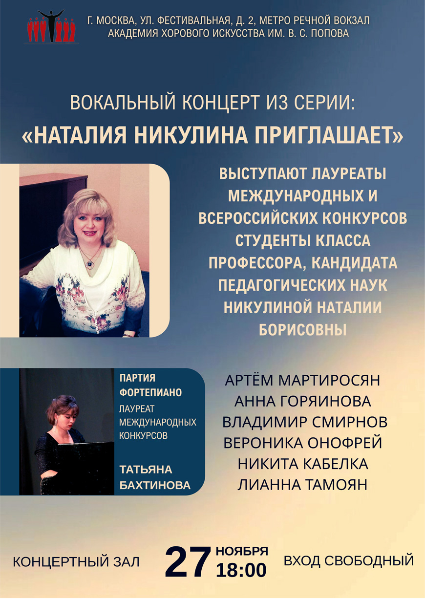 Вокальный концерт «Наталия Никулина приглашает»