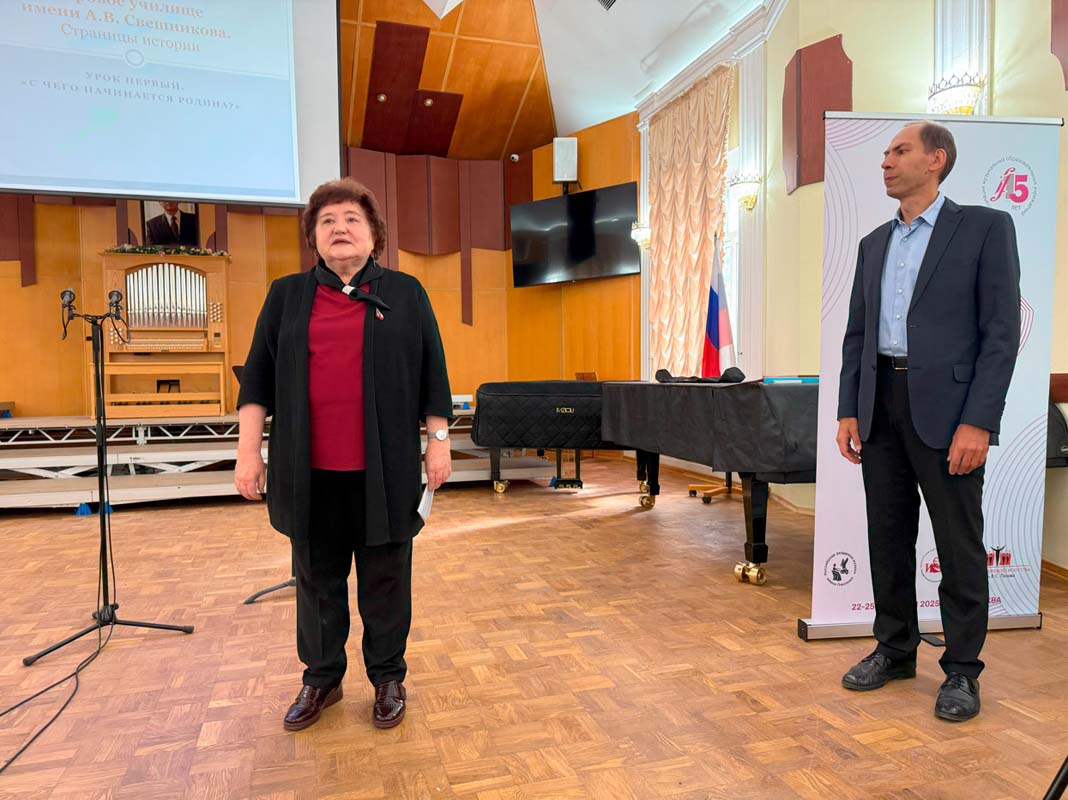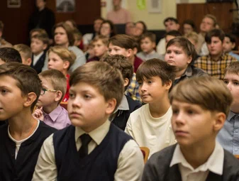 Беседа прошла в увлекательной интерактивной форме, сопровождалась звуковыми и видео-иллюстрациями, искусно подобранными рассказчиком для урока. Ребята познакомились с историей создания Хорового училища, замечательными музыкантами, хоровыми деятелями и педагогами, которые стояли у истоков отечественного хорового образования.