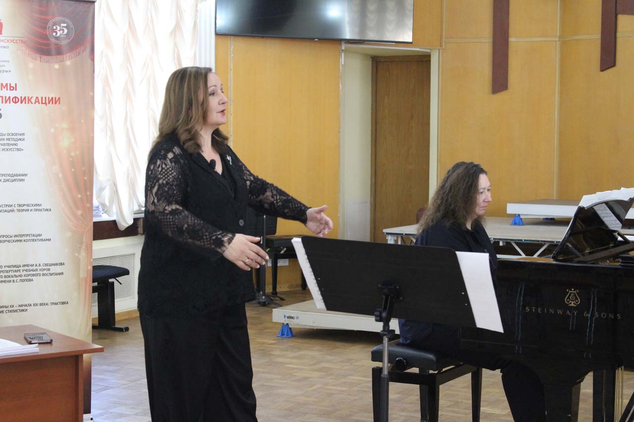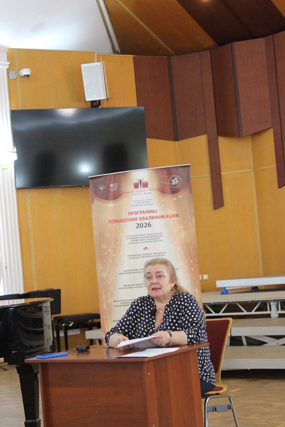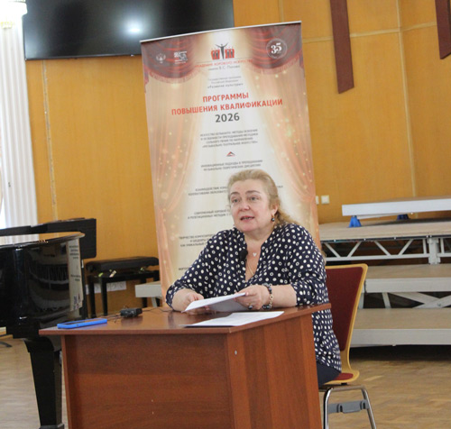 Одно из мероприятий образовательной программы – круглый стол слушателей с заведующей кафедрой сольного пения, профессором Натальей Алексеевной Поповой. Он включает обсуждение широкого спектра вопросов по проблемам вокальной подготовки в региональных музыкально-образовательных учреждениях.