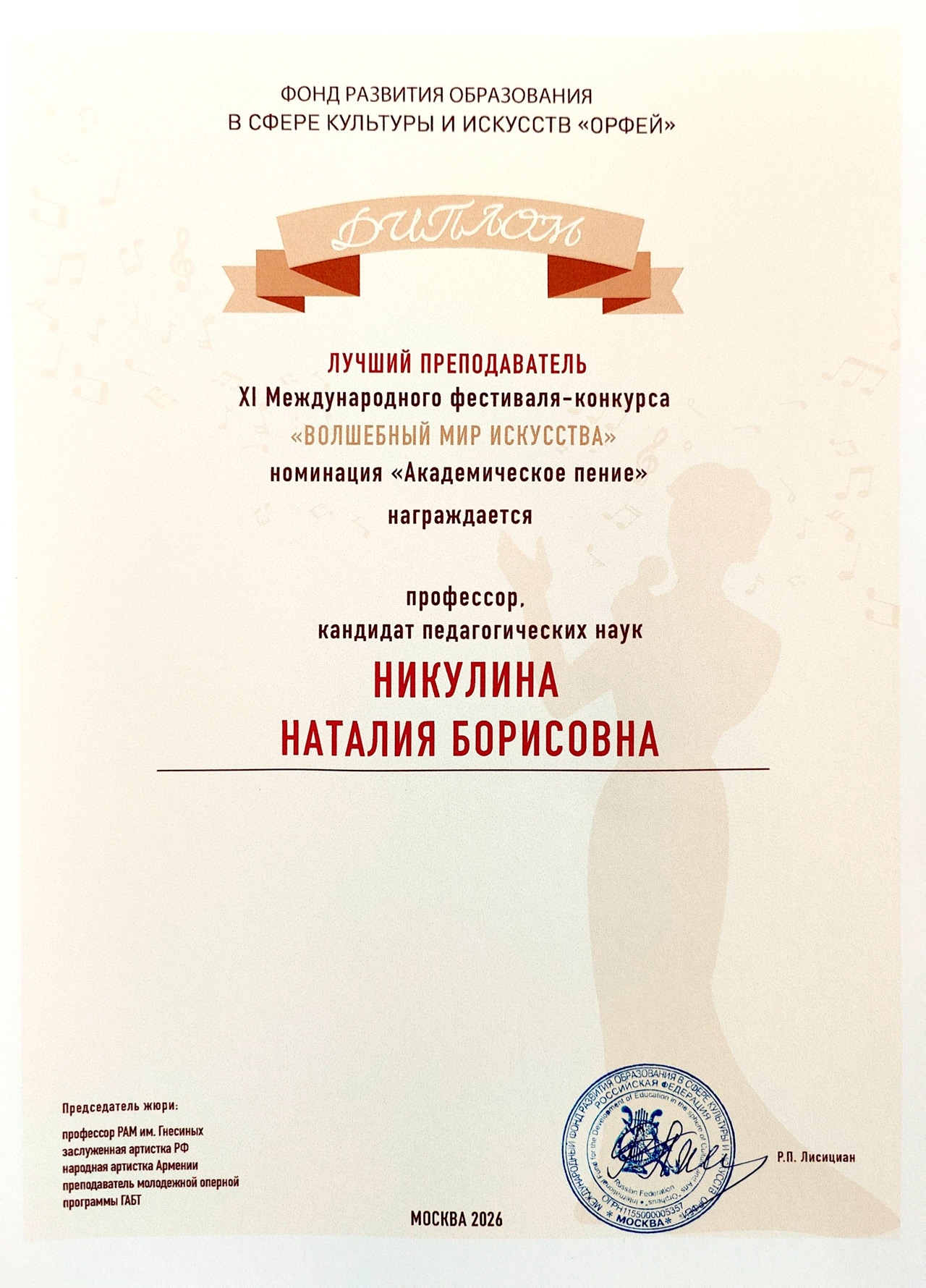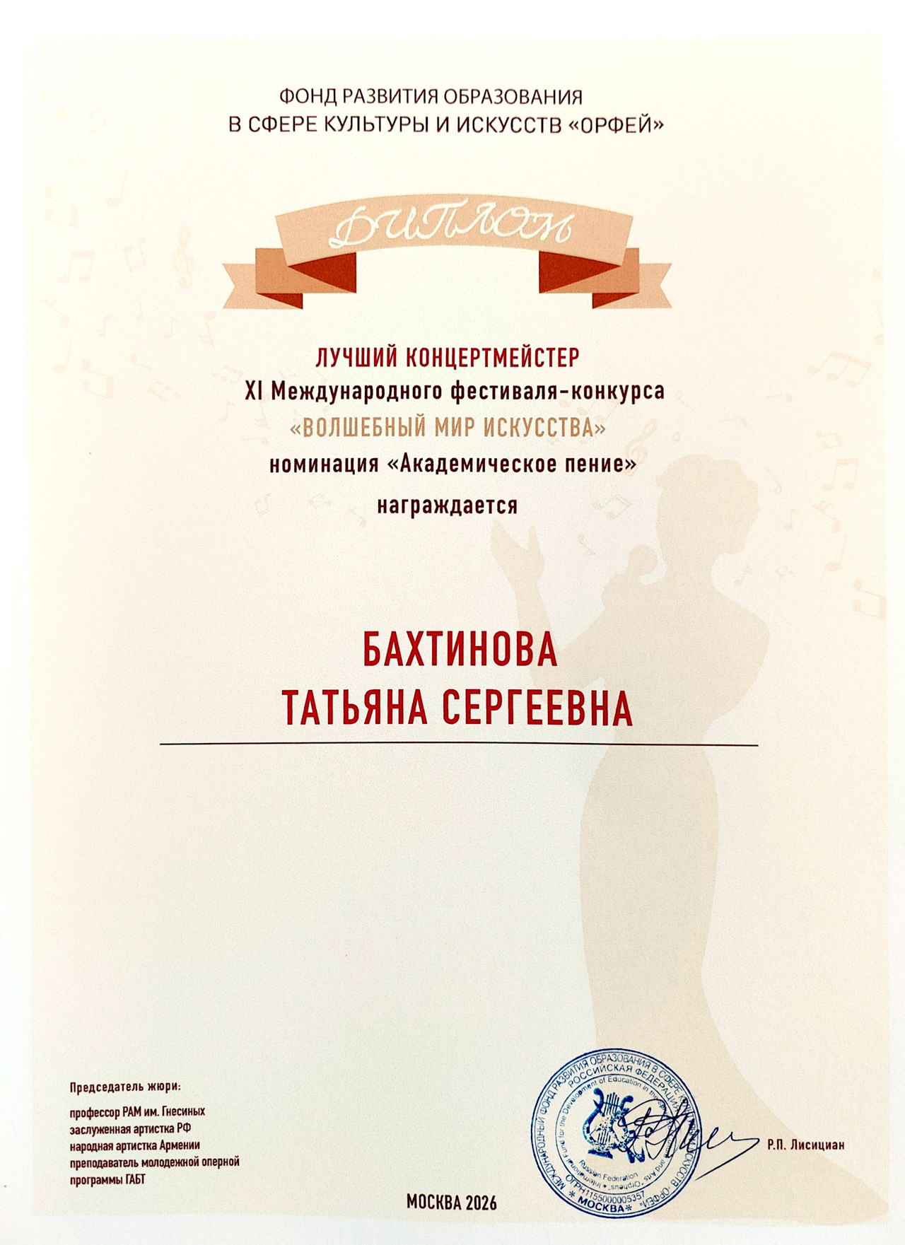 Конкурс состоялся 21- 22 февраля 2026 года в Москве. Председатель жюри конкурса – заслуженная артистка Российской Федерации, народная артистка Армянской ССР, профессор Рузанна Павловна Лисициан.