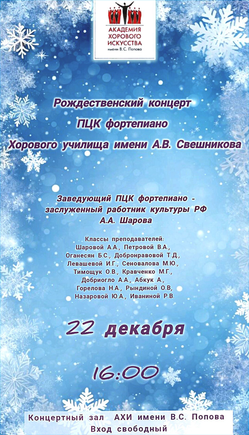 Рождественский концерт ПЦК фортепиано Хорового училища им. А.В. Свешникова