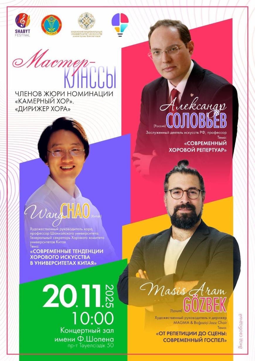 Отличительным моментом конкурса Шабыт является и тот факт, что все премии являются неделимыми, так что на членах жюри лежала особая ответственность за беспристрастность в оценках. Также в рамках конкурса прошли мастер-классы членов жюри – мэтров хорового искусства: Александра Соловьёва (Россия), Ван Чао (Китай) и Масиса Гозбека (Турция), оставив яркие впечатления и дав пищу для размышления преподавателям и учащимся Казахского национального университета.