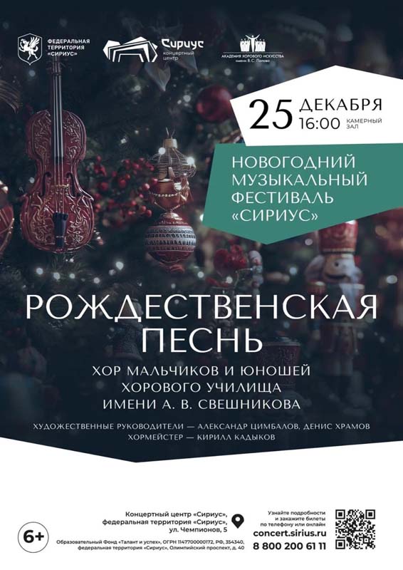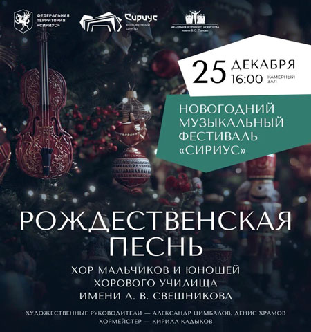 25 декабря 2025 года в рамках Новогоднего музыкального фестиваля «Сириус» (г. Сочи, Коаснодарский край) состоялся сольный концерт Хора мальчиков и юношей Хорового училища имени А.В. Свешникова (художественные руководители: А.В. Цимбалов, Д.Ю. Храмов, хормейстер: К.Н. Кадыков).