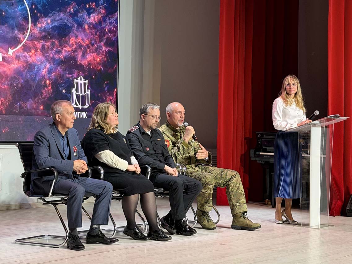 «Сегодня у студентов МГИК есть уникальная возможность прямого, честного, открытого диалога с теми, кто перешагнул зону привычного комфорта. И через их будни, через их труд, через их боль много переосмыслить». Он также отметил, что культура всегда шла рука об руку с историей и «без культуры невозможно было бы воспитать ту энергетику, с которой наши великие космонавты, офицеры и труженики тыла свершали свои героические и трудовые подвиги».