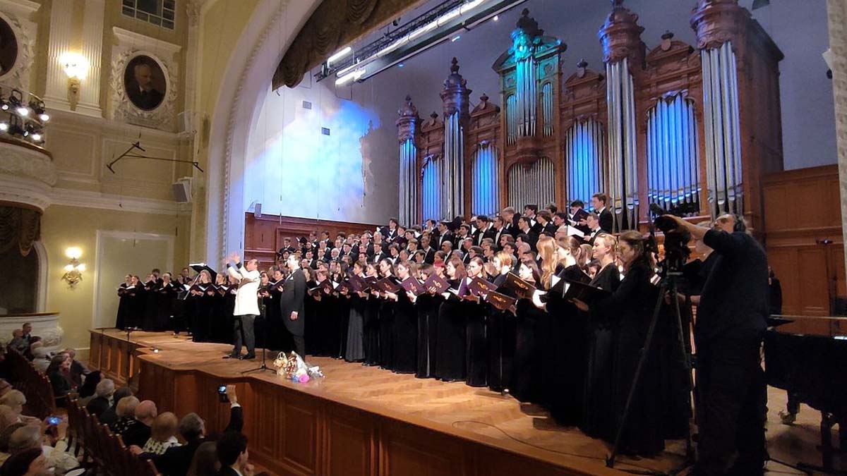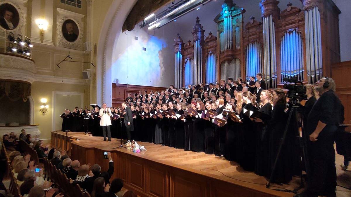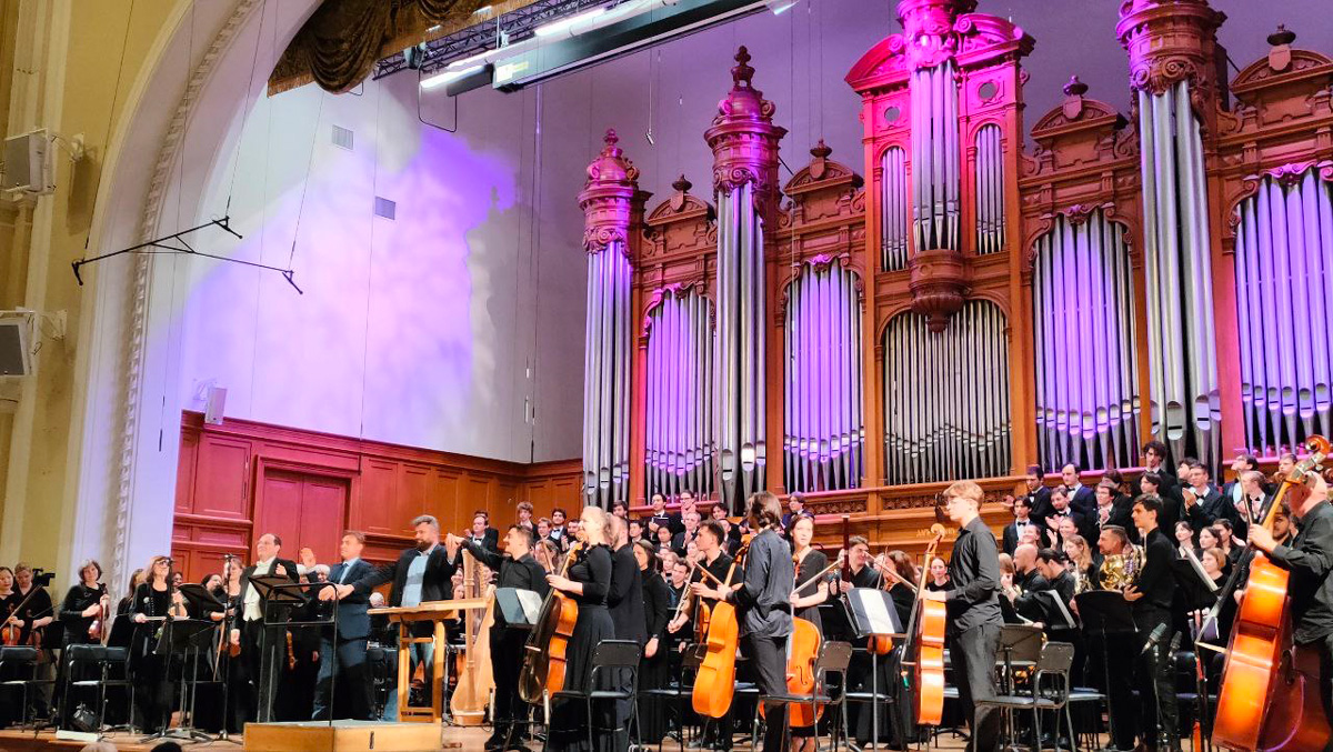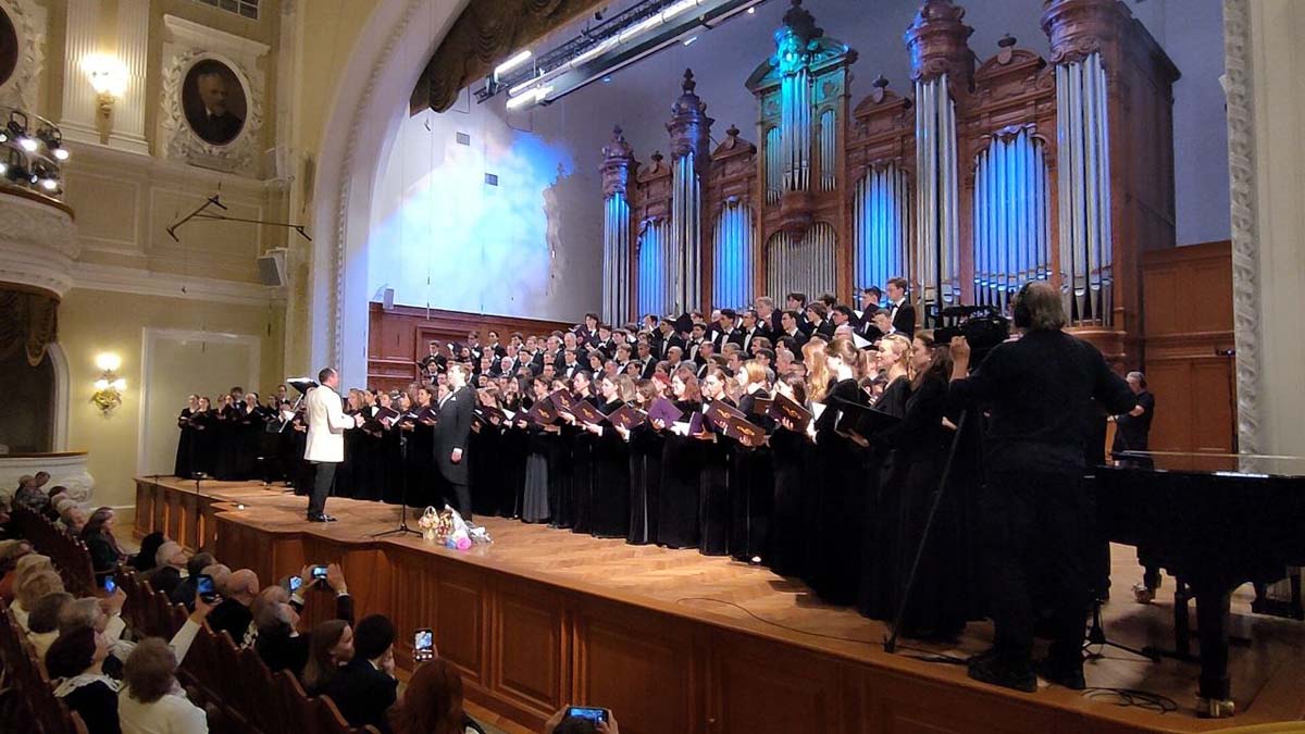 Сводный хор выступил совместно с Симфоническим оркестром Оперного театра Московской консерватории (заведующий кафедрой оперной подготовки, декан вокального факультета, Народный артист России – профессор П.И.Скусниченко, дирижер – доцент Вячеслав Валеев).