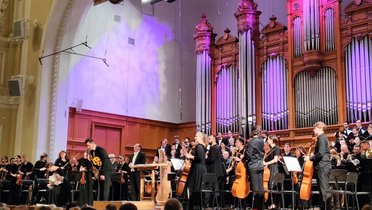 В исполнении Сводного хора и оркестра прозвучали: Финал кантаты «Москва» П.Чайковского, Фрагмент финала Симфонии №1 А.Скрябина.