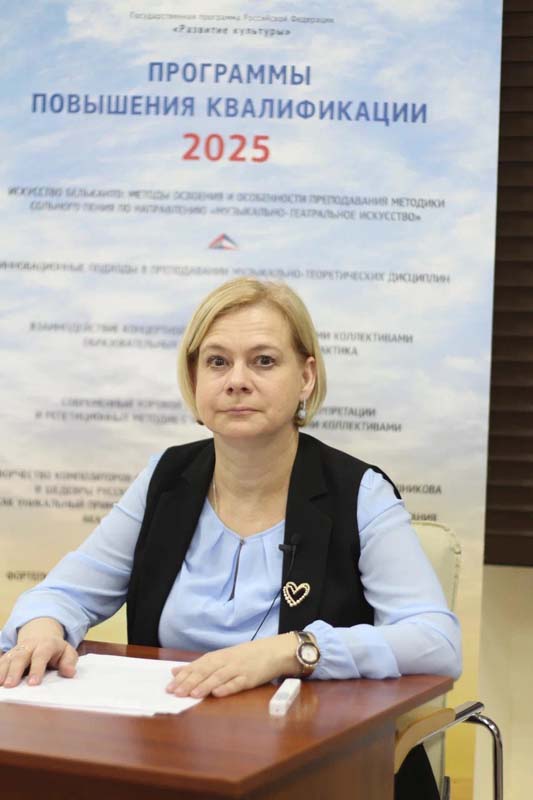 Автор программы, первый проректор – проректор по учебно-воспитательной работе и развитию, заведующая кафедрой фортепиано, кандидат искусствоведения, профессор Ольга Альбертовна Красногорова познакомила слушателей с композиторскими концепциями фортепианной музыки новейшего времени и особенностями ее восприятия. Одной из тем программы стала презентация «Хрестоматии для учащихся средних и старших детских музыкальных школ», опубликованная в 2025 году издательством «Музыка» (составитель О.А. Красногорова). В издание вошли сочинения композиторов – выпускников Московского хорового училища. На мастер-классе были представлены фортепианные сочинения композиторов-выпускников Московского хорового училища и русских композиторов XX века.