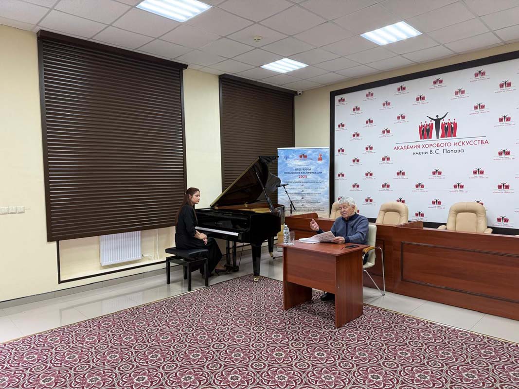 03 ноября 2025 года в Академии хорового искусства имени В.С. Попова завершилось обучение по дополнительной профессиональной программе повышения квалификации «Фортепиано в музыке композиторов второй половины XX–XXI века: трактовка инструмента, композиторские стилистики» для 55 слушателей из 17 регионов Российской Федерации. Программа реализуется Центром непрерывного образования и повышения квалификации творческих и управленческих кадров в сфере культуры Академии хорового искусства имени В.С. Попова в рамках государственной программы Российской Федерации «Развитие культуры».
